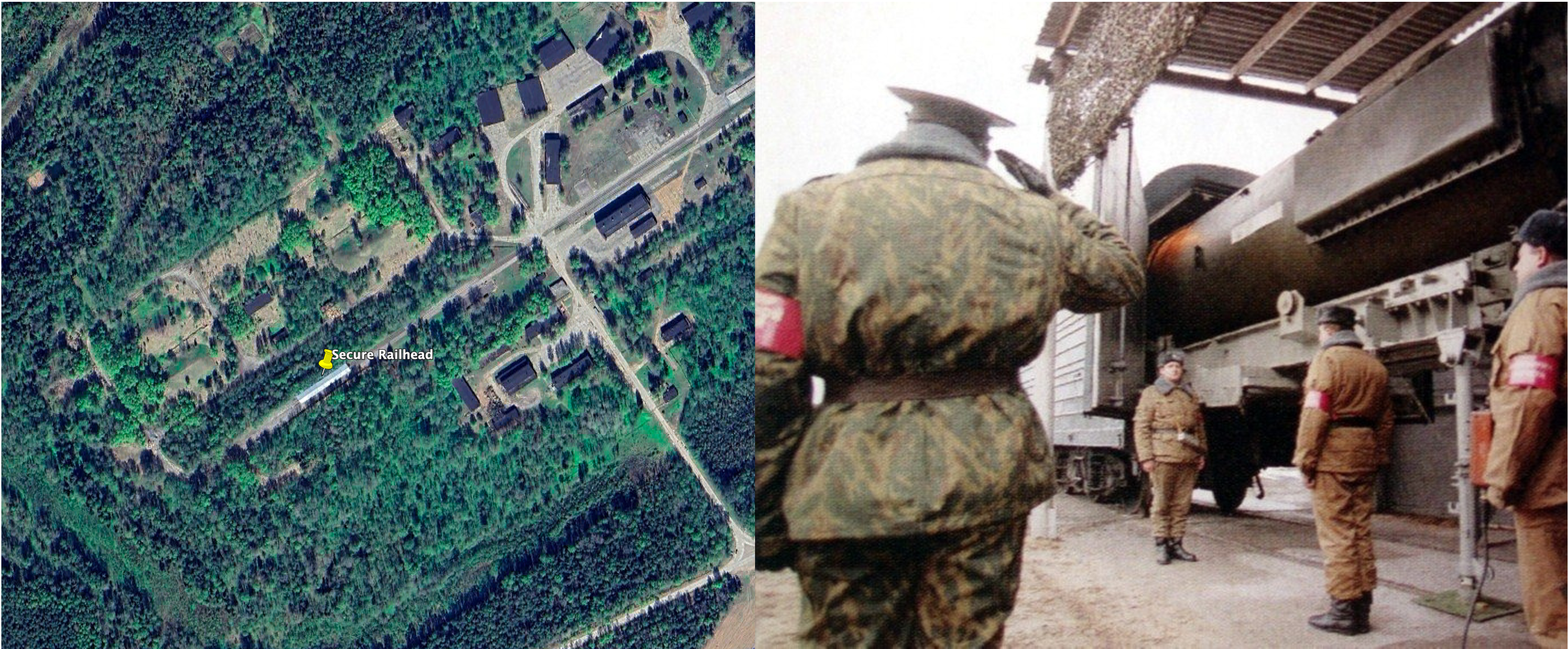 The most important indication is that construction crews completely rebuilt the railhead servicing the former airfield, a strong signature that the site is to be used by Russia’s Strategic Rocket Forces (RVSN). Below, you can see a satellite image of one of a railhead at the 7th Guards Division near Vypolzovo, as well as a ground truth image from an unidentified reference.