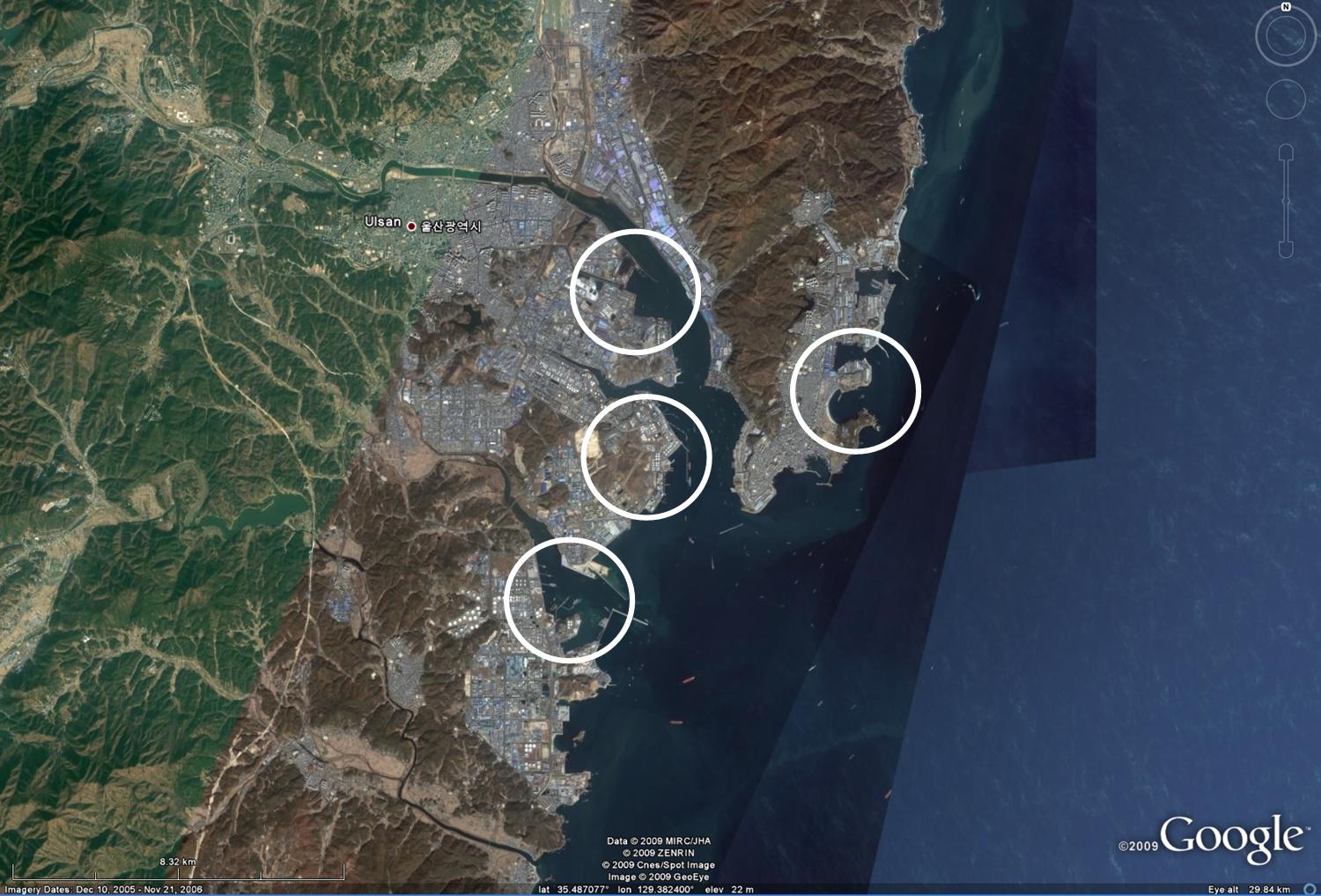 There’s also another refinery and docks facility at Yeosu (E127.77 N34.86 ish).